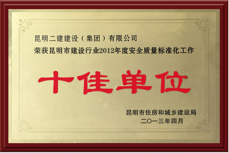 2012年度昆明市建設(shè)行業(yè)安全質(zhì)量標準化工作十佳單...