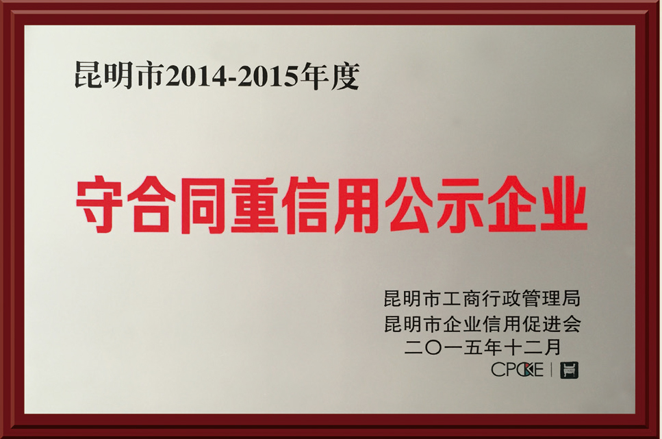 昆明市2014-2015年度守合同重信用公示企業(yè)