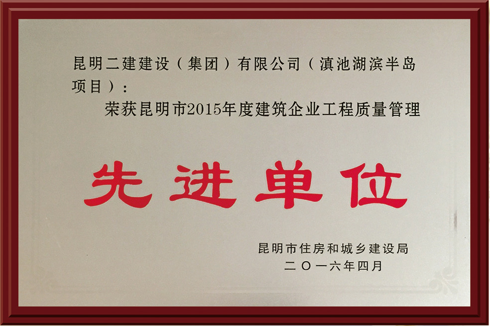 2015年度建筑企業(yè)工程質(zhì)量管理先進單位